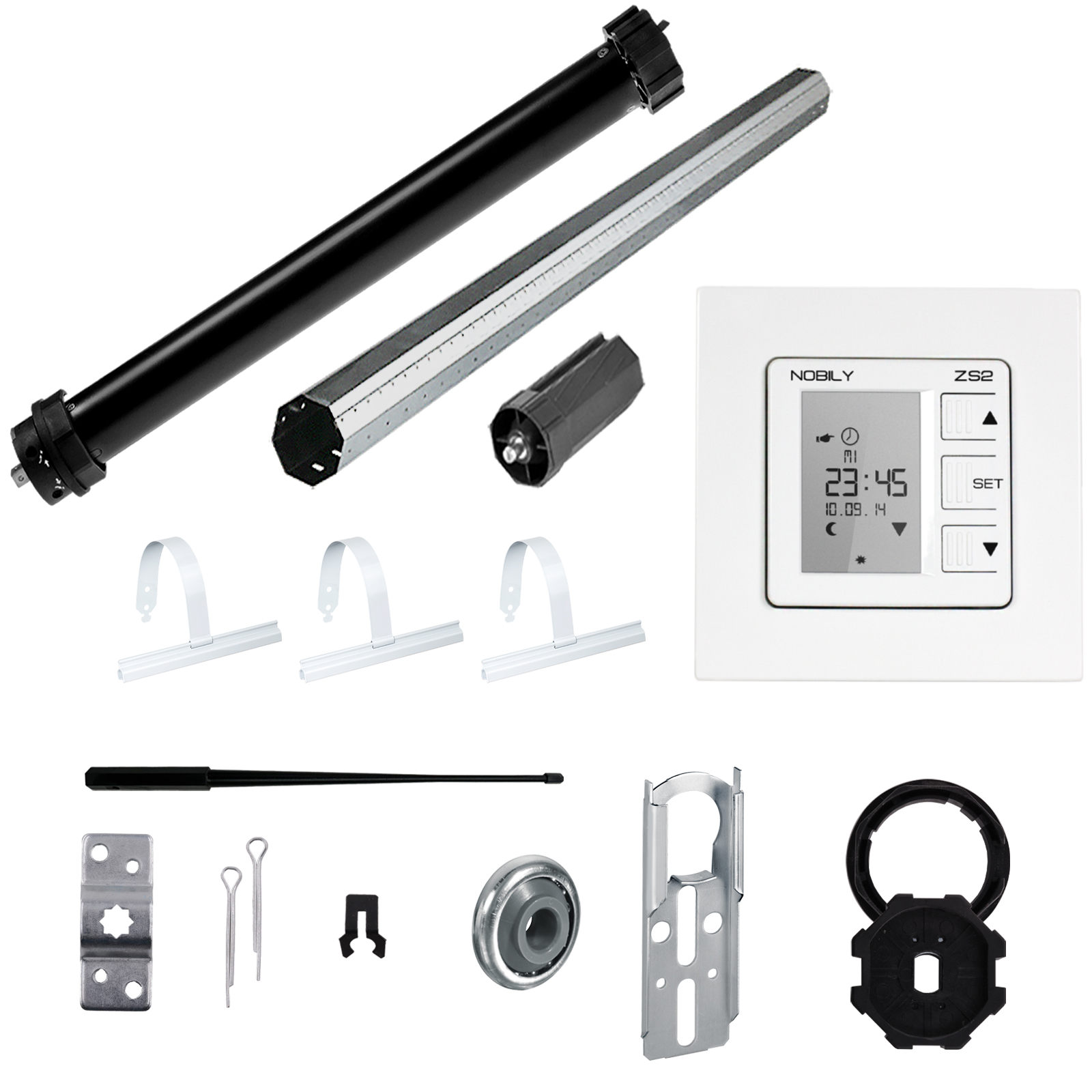 Produktinformationen "NOBILY Komplettset inkl. Rollladenmotor P5, Rollladenwelle 100cm u. Rollladensteuerung ZS2 Zugkraft 10Nm / 25kg SW60"