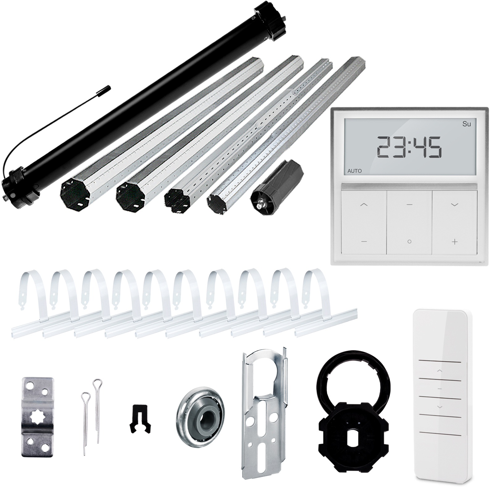 Produktinformationen "NOBILY Komplettset inkl. Funk-Rollladenmotor PRE5, Rollladenwelle 350cm u. Funk-Wandsender Time Exquisit Zugkraft 40Nm / 90kg SW60"