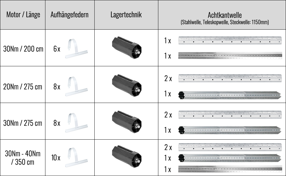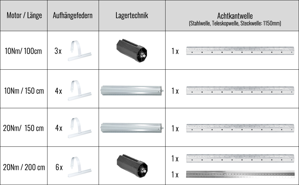 Produktinformationen "NOBILY Komplettset inkl. Rollladenmotor P5, Rollladenwelle 150cm u. Mechanik Zubehör Zugkraft 10Nm / 25kg SW60"