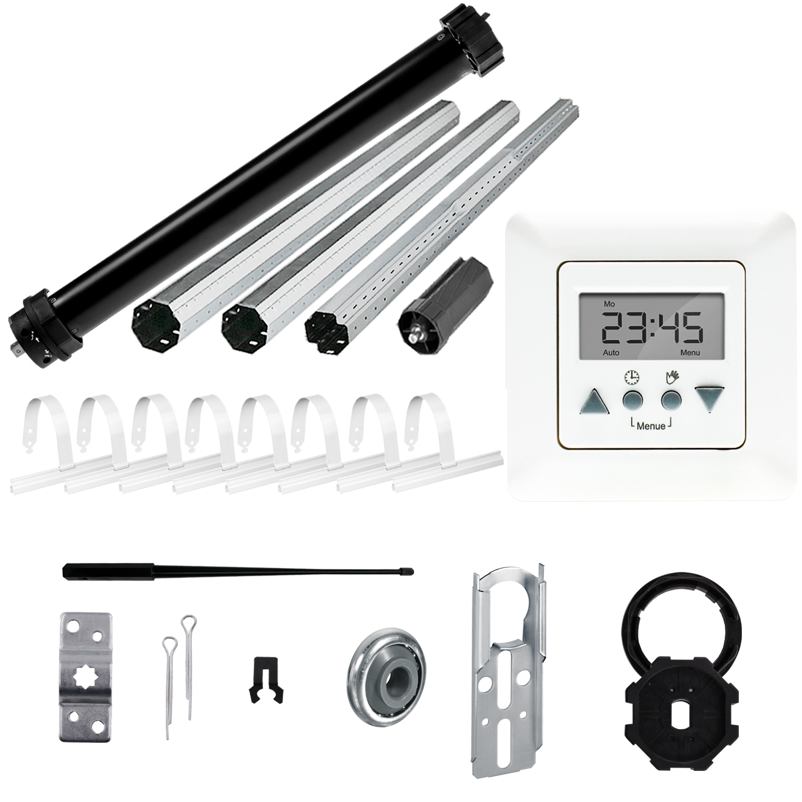 Sie haben sich für unser leistungsstarkes PROFI-Rollladen-Set in neuester Ausführung entschieden? Eine gute Wahl, bewegen Sie Ihre Rollläden automatisch und sparen Sie Zeit und Geld! Mehr Komfort im täglichen Alltag, die ideale Lösung zum Nachrüsten bei bestehenden Rollläden oder ganz unkompliziert als komplette Neuinstallation.