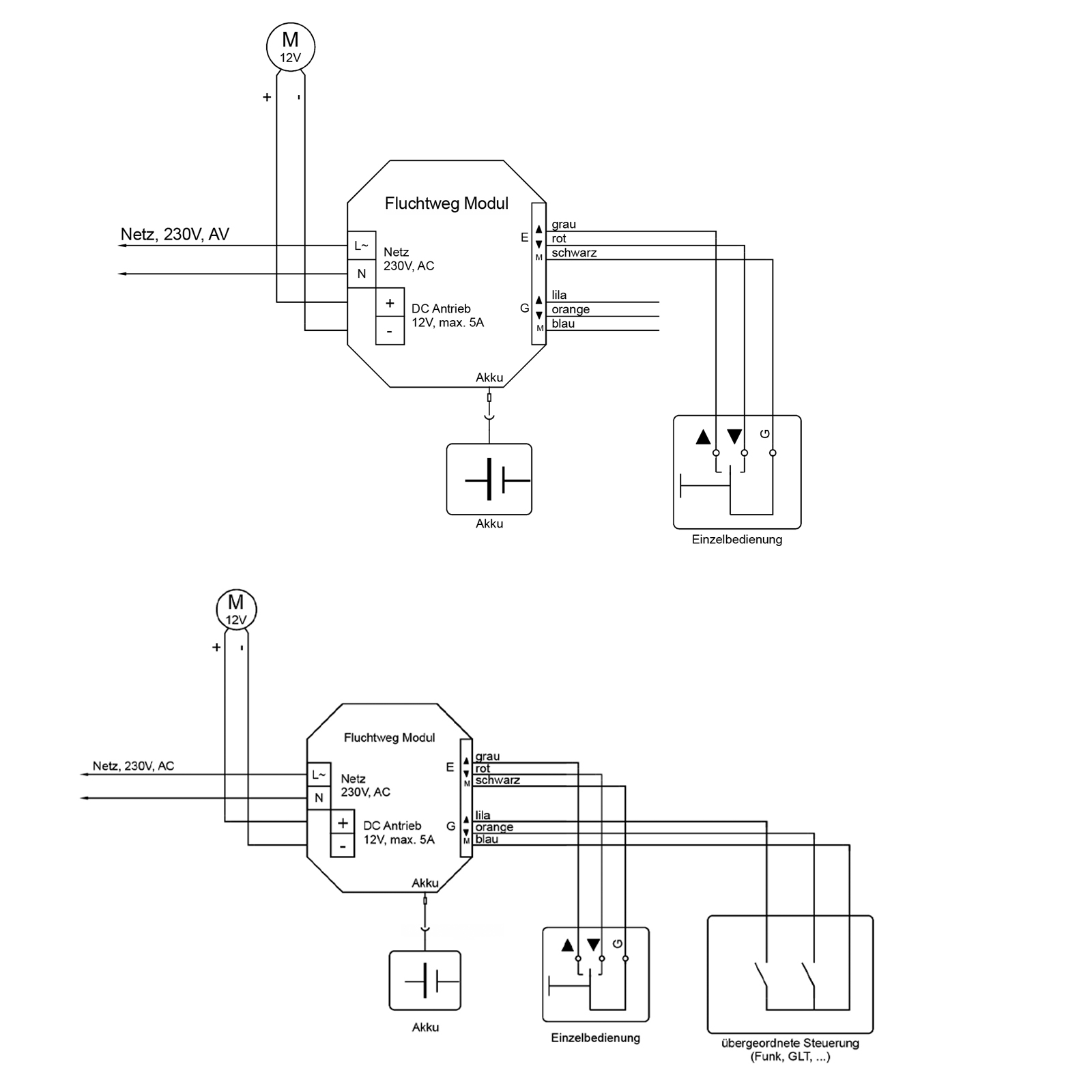 Zur Ansteuerung eines geeigneten Gleichstromantriebs 12VDC max. 5A inkl. Akkupufferung.