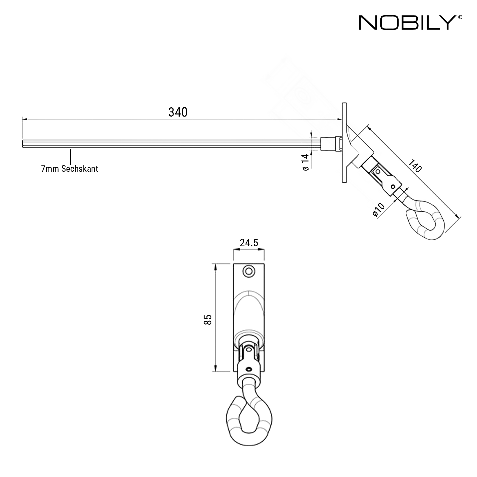 - Länge Anschlussstab: 340 mm