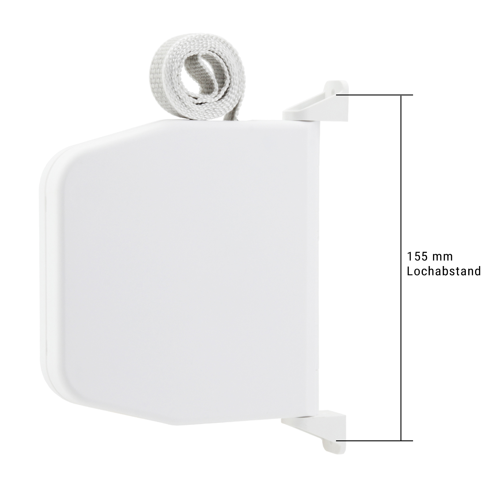 Durch das schwenkbare System ist die Montage flexibel an Wand oder Fensterrahmen möglich. Der Lochabstand beträgt 155mm.