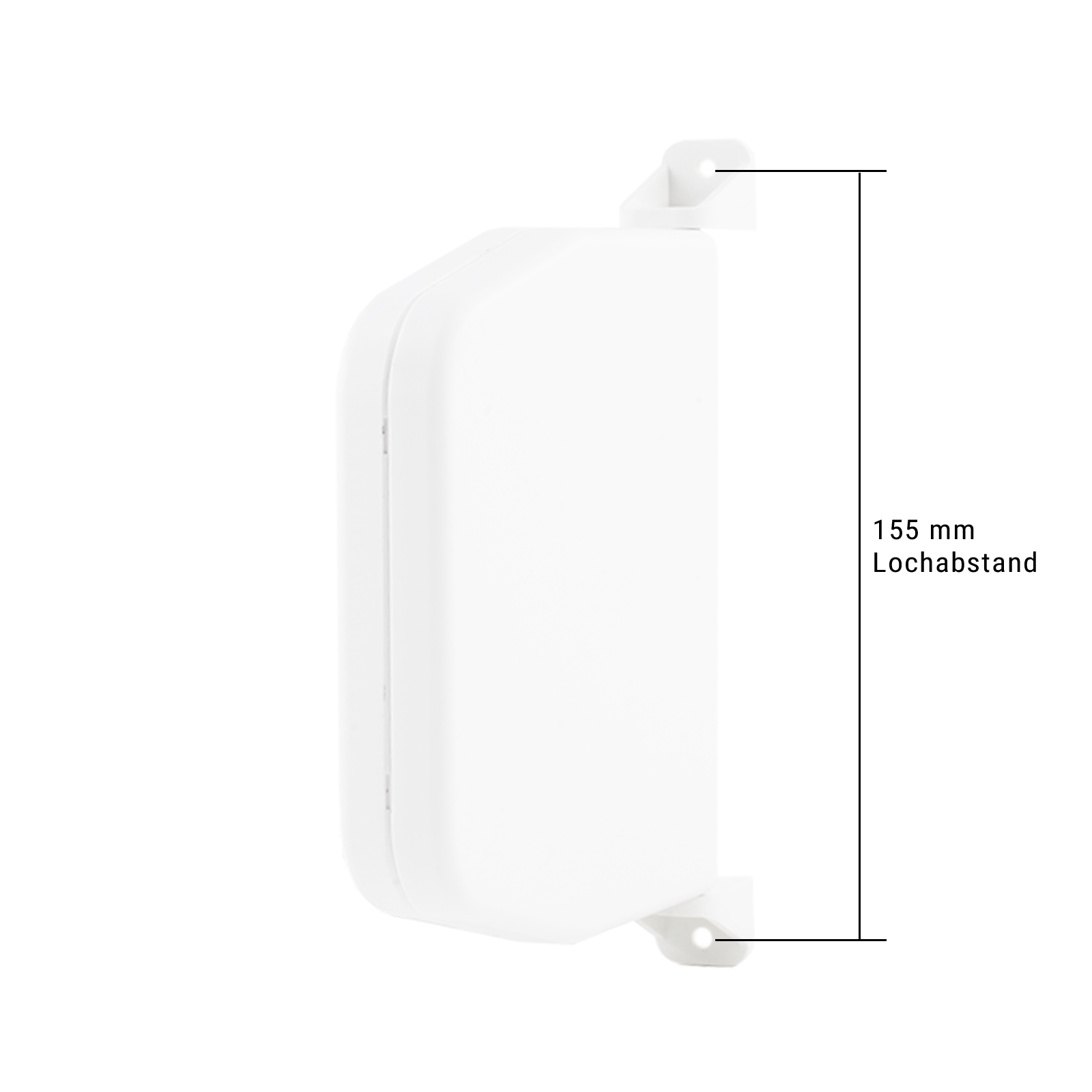 Durch das schwenkbare System ist die Montage flexibel an Wand oder Fensterrahmen möglich. Der Lochabstand beträgt 155mm.