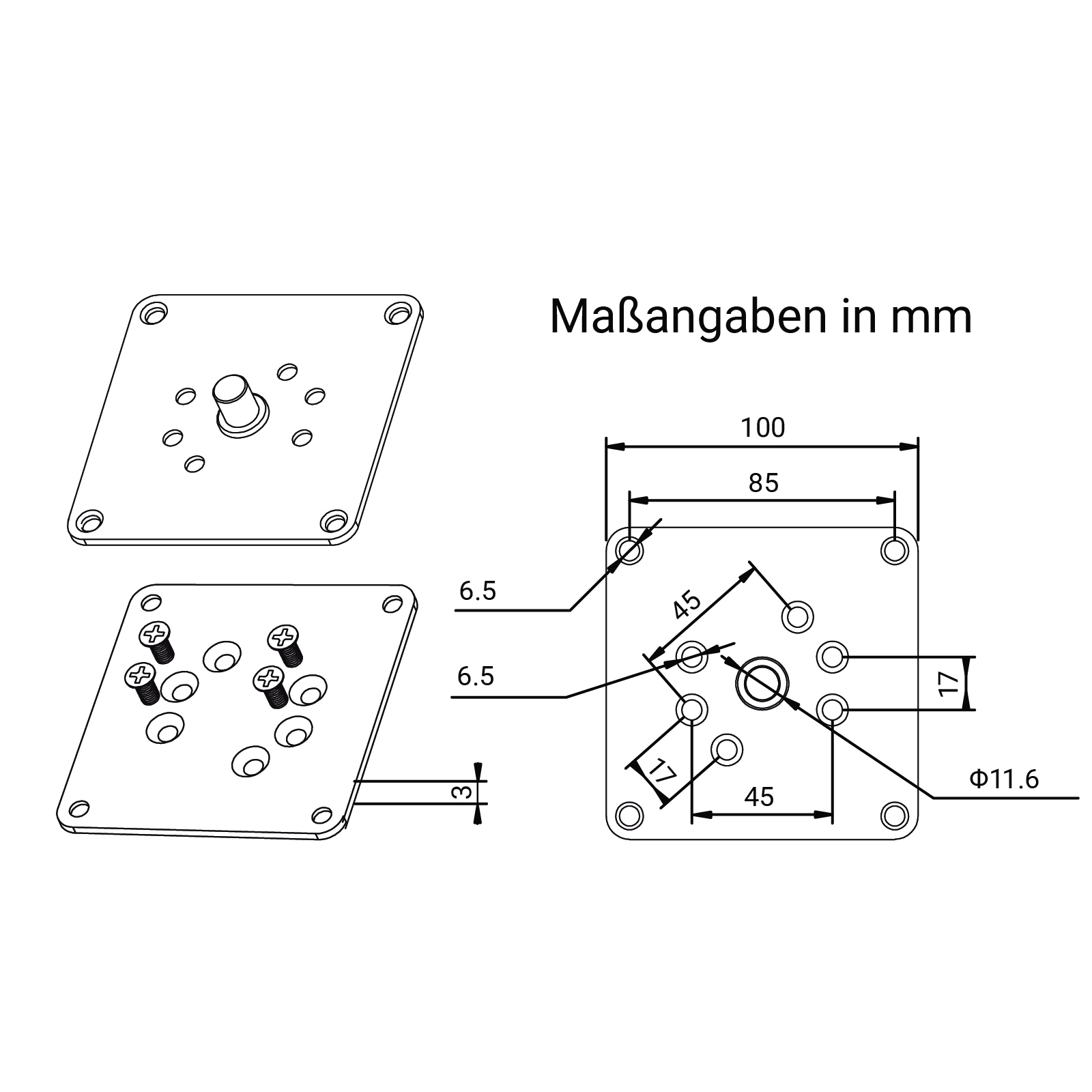 - 4 Gewindeschrauben M6 L: 10 mm
