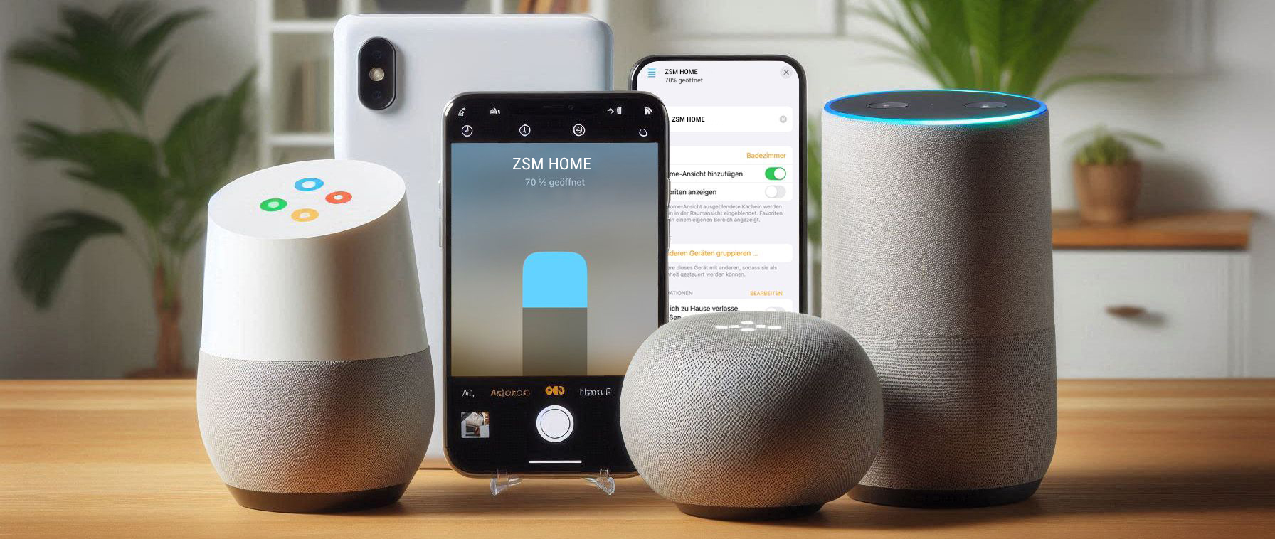 Die ZSM HOME ist mit Alexa Google Assistant und Siri kompatibel. Die Rollläden können dann mit Befehlen wie: