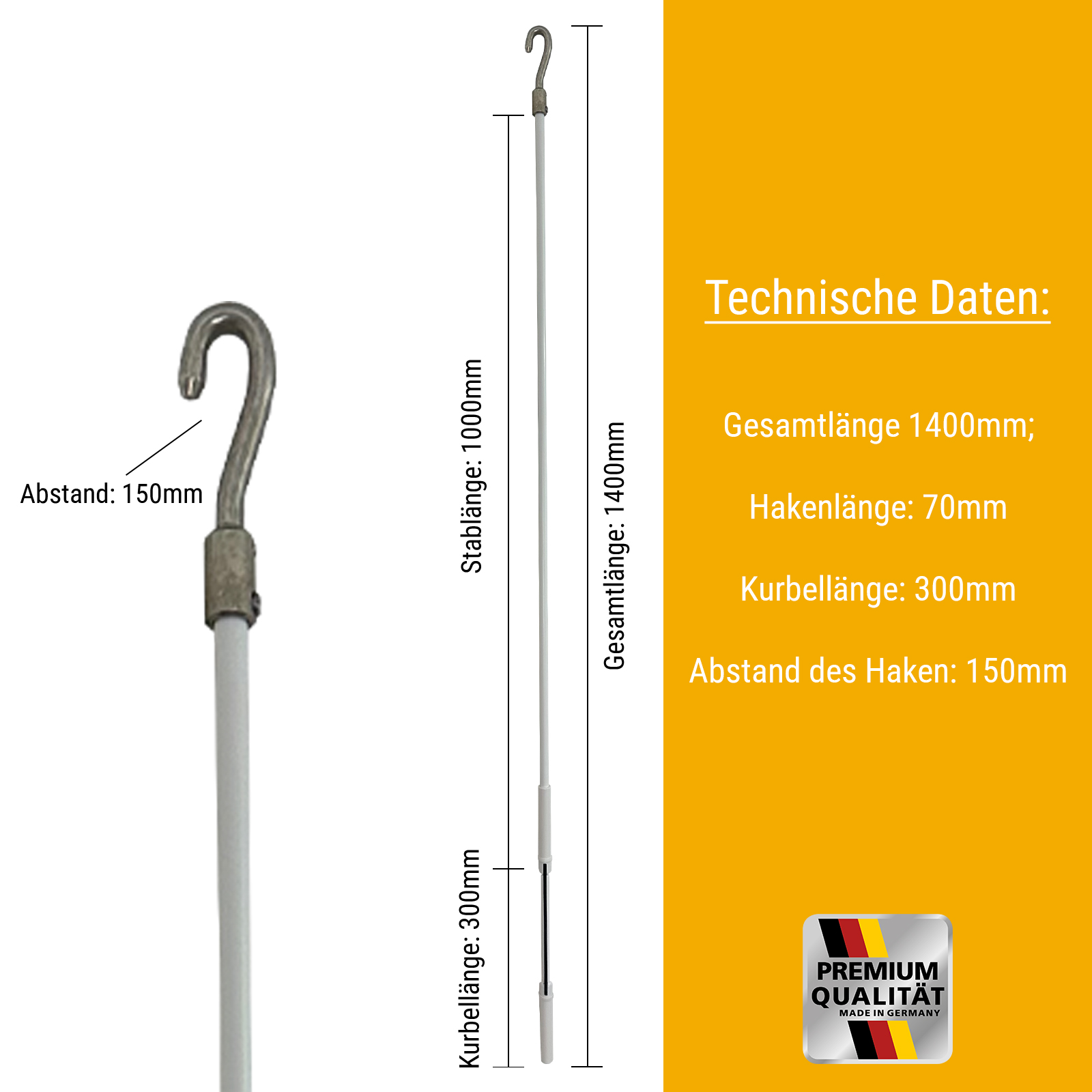 Stange: 100 cm | Kurbel: 30 cm | Hakenlänge: 10cm