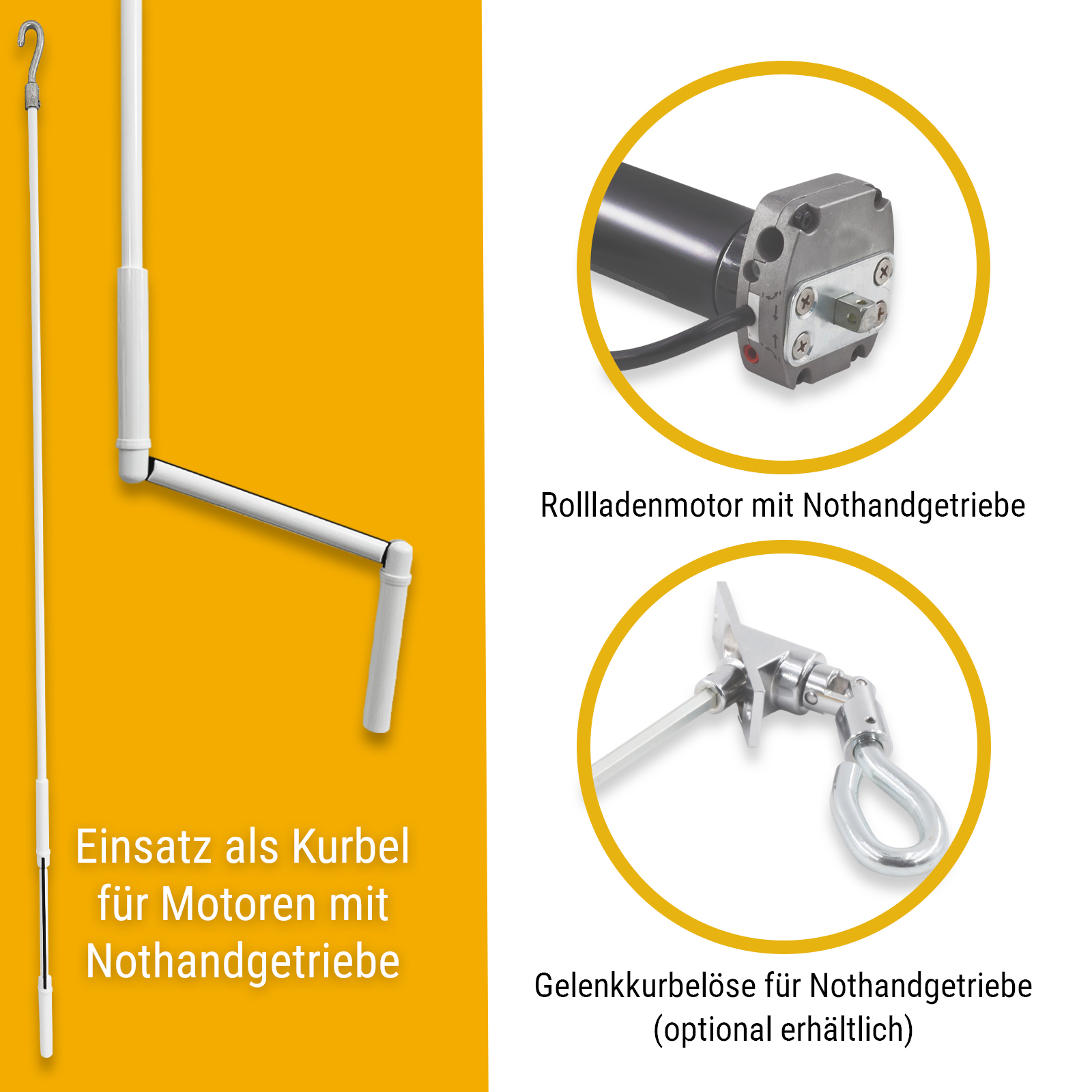 Handkurbel mit Haken, Länge 1400 mm, weiß, für Rollladen und Markisen