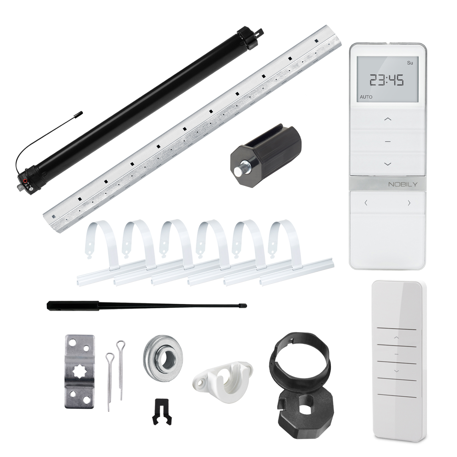 Produktinformationen "NOBILY Komplettset inkl. Funk-Rollladenmotor PR4, Rollladenwelle 200cm u. Funk-Handsender Timer Exquisit Zugkraft 13Nm / 36kg SW40"