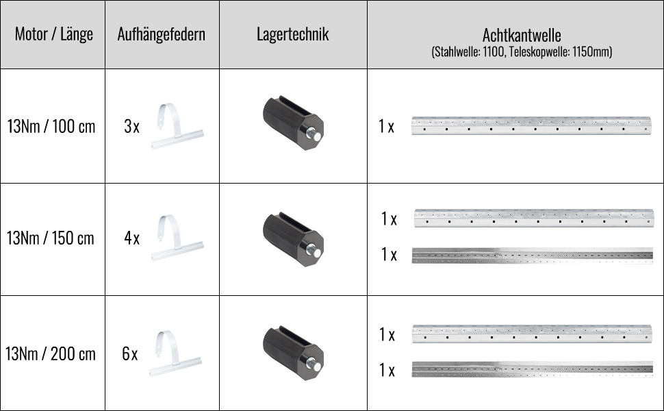 | Produktumfang: | Komplettset (Motor + Steuerung + Mechanik) |